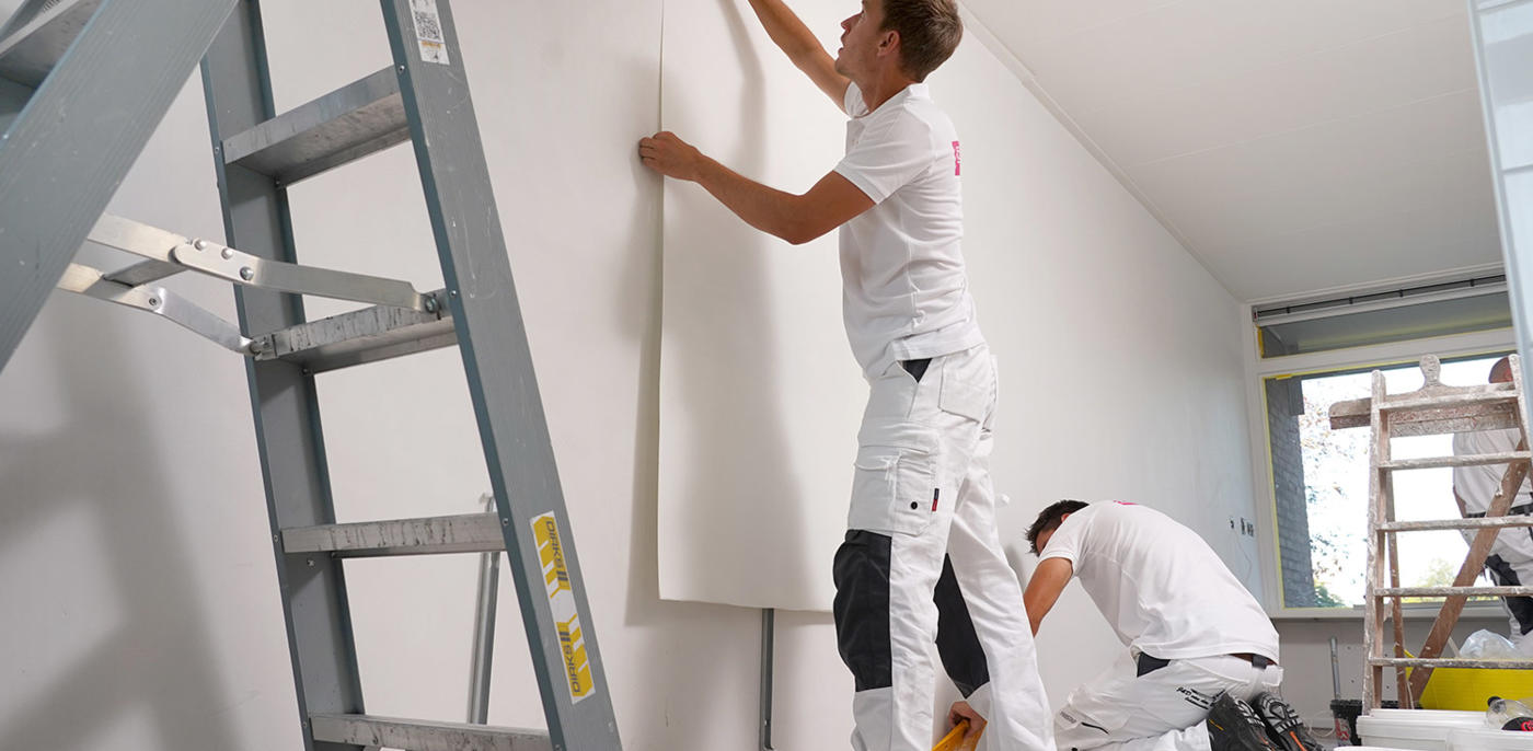 Renovliesbehangen is een snelle manier van afwerken. Na het aanbrengen kan er direct worden geschilderd.